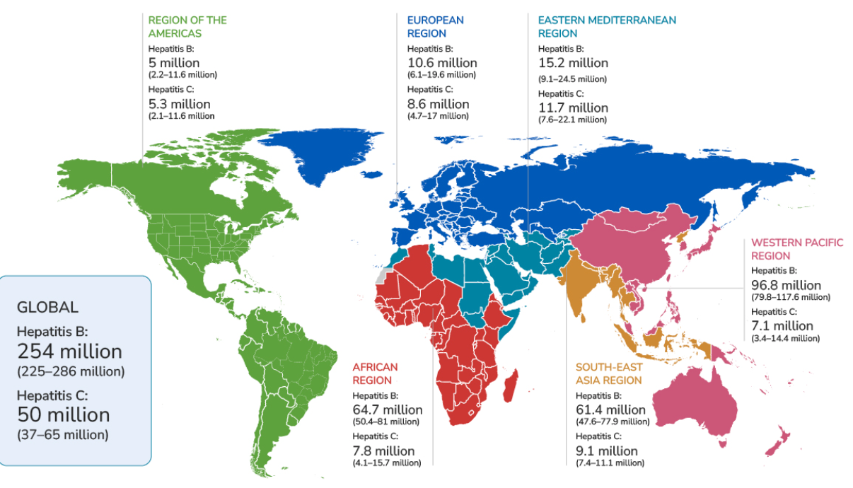 On a global scale, viral hepatitis remains a health concern. According to the CDC’s July 25, 2025, update, over 300 million people worldwide are affected by viral hepatitis. In 2022, there were an estimated 1.2 million new HBV infections and 1 million new HCV infections. Chronic HBV and HCV infections account for approximately 1.3 million deaths annually from liver disease and hepatocellular carcinoma.2