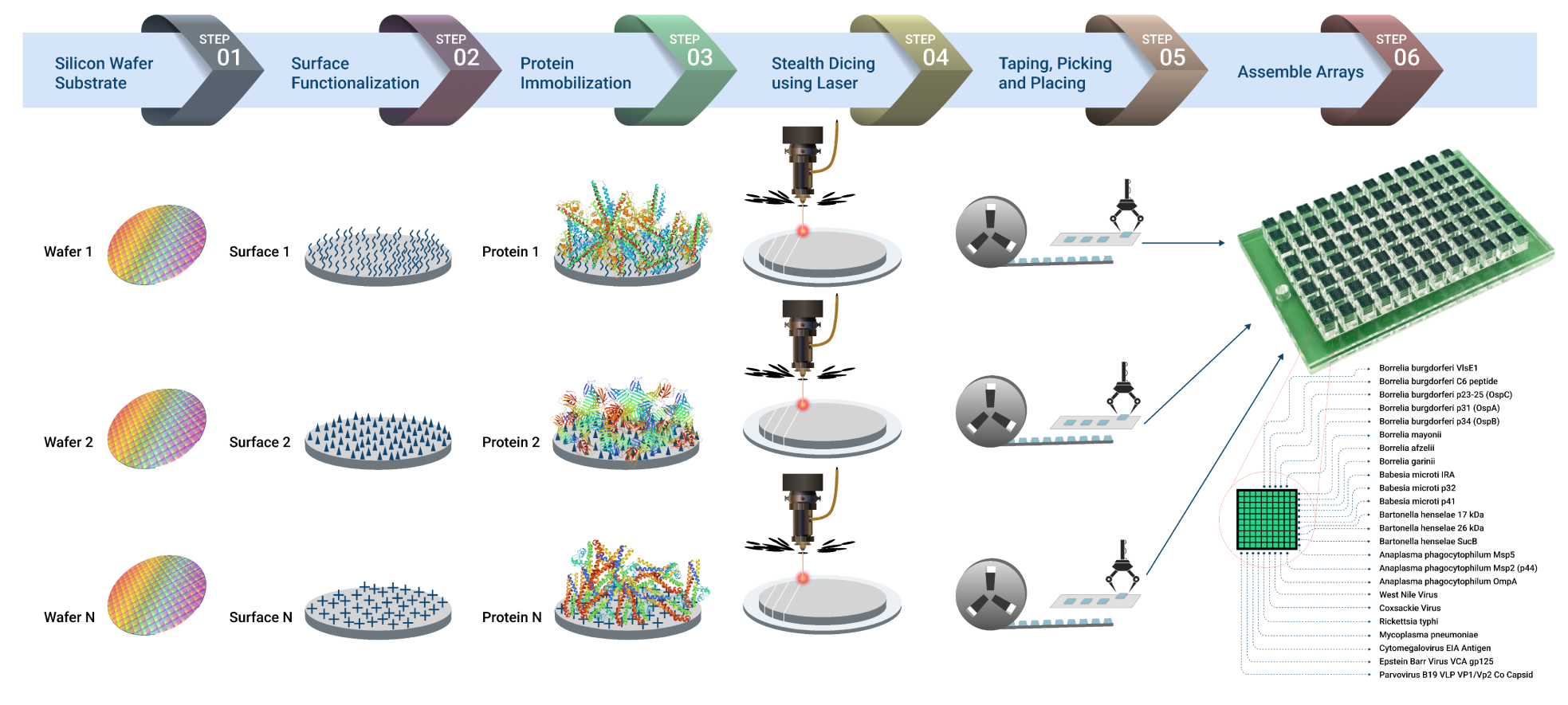 Barker elaborated further on how Vibrant’s microarray improves diagnostic capabilities, “With Vibrant’s technology, we can actually run 100 different antigens on one single little pillar. We can look at all the different parts of the Borrelia burgdorferi bacteria. We can look at the co-species. We can look at the co-infections. We also look at opportunistic infections like Epstein-Barr and cytomegalovirus and toxoplasmosis because all this other stuff that people may very well be infected with as well.”
